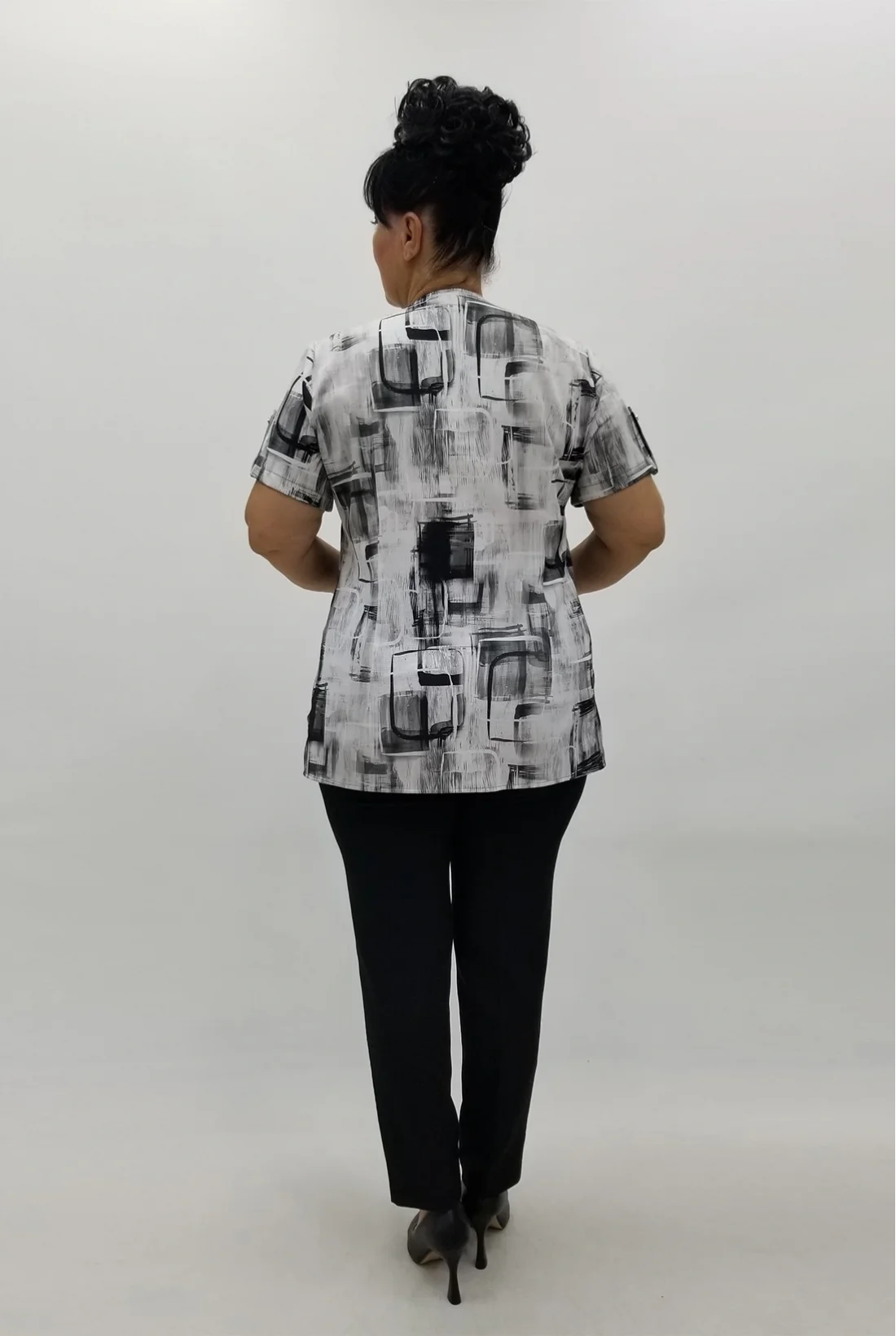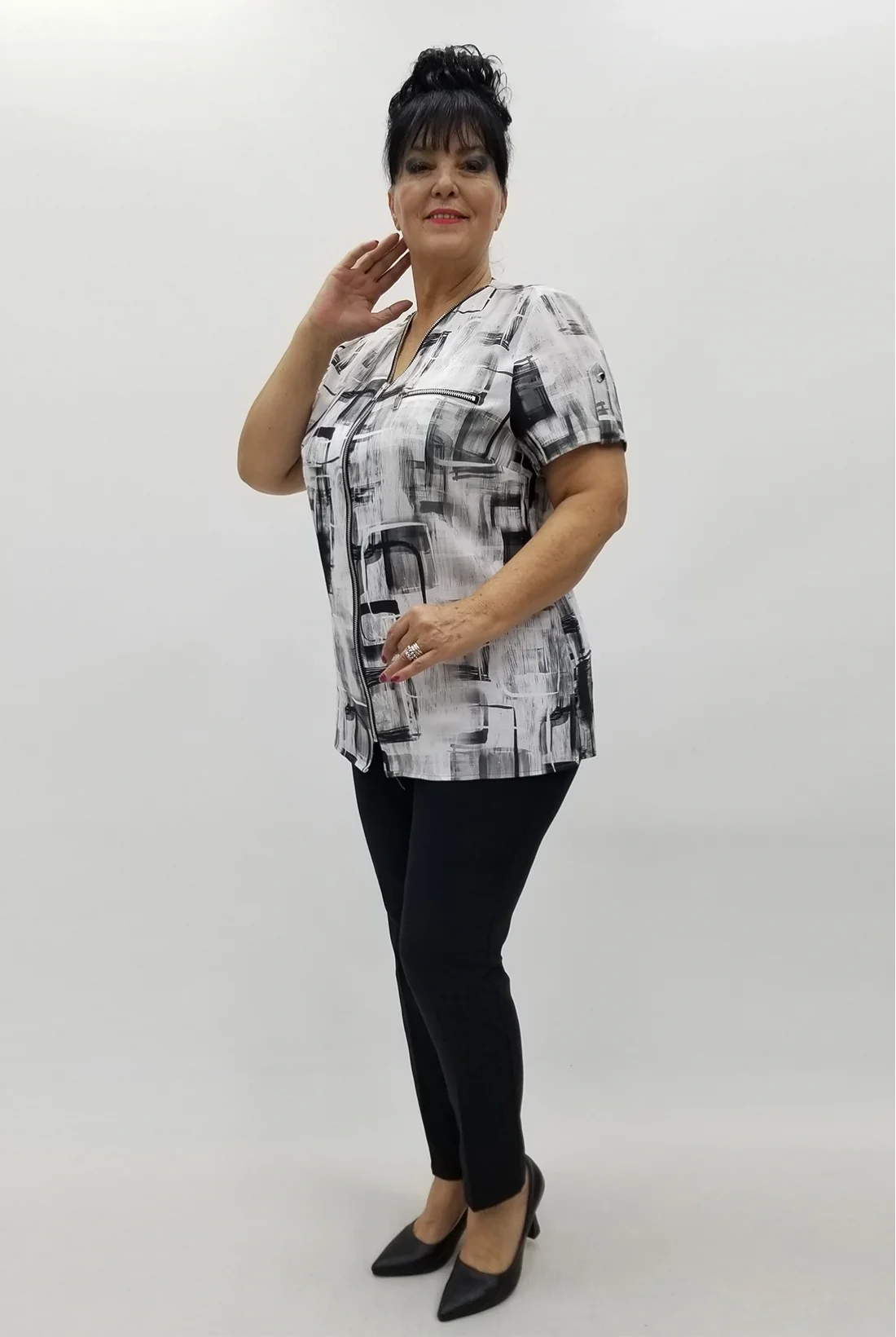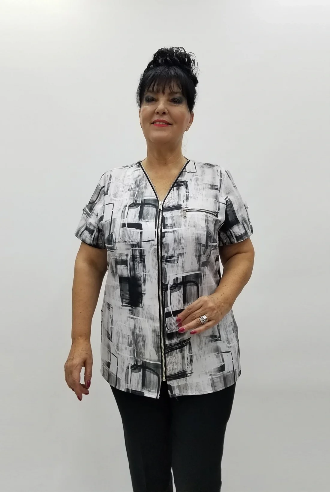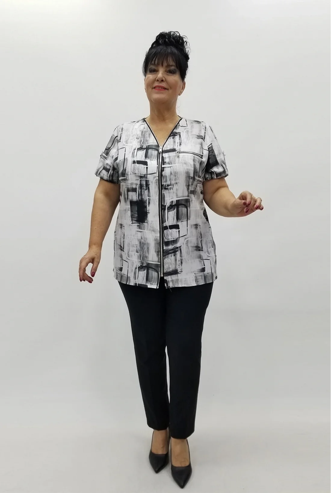 Önü fermuarlı, yandan yırtmaçlı, keten kumaş bluz (Tam kalıptır, likralı değildir.)