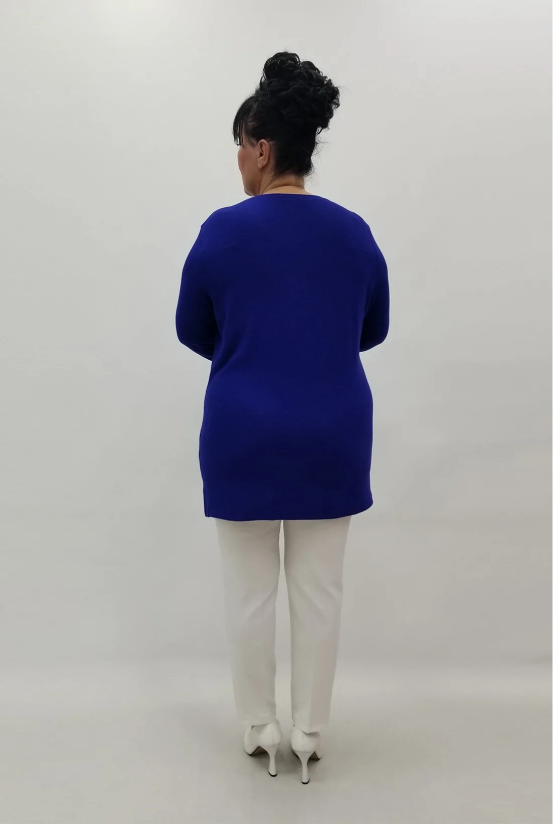 Ön kısmı taşlarla işlenmiş likralı triko bluz. (Tam kalıptır, tam bedeninizi tercih edebilirsiniz.)