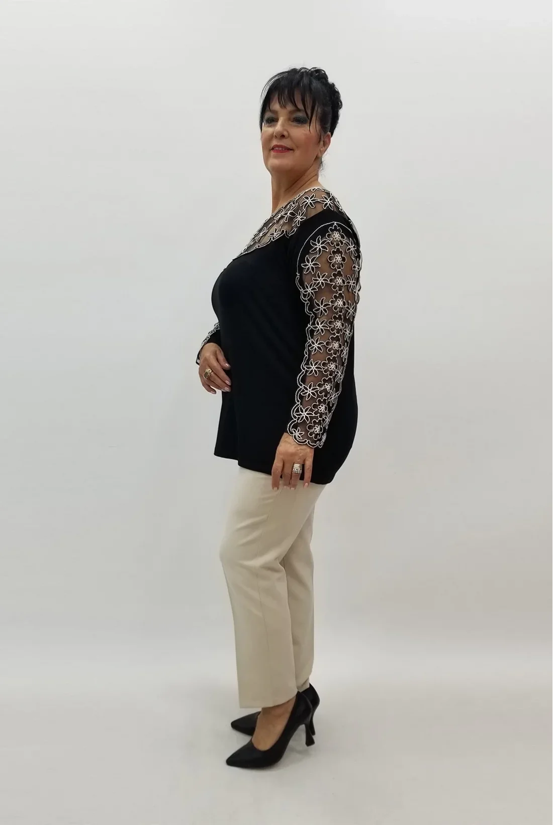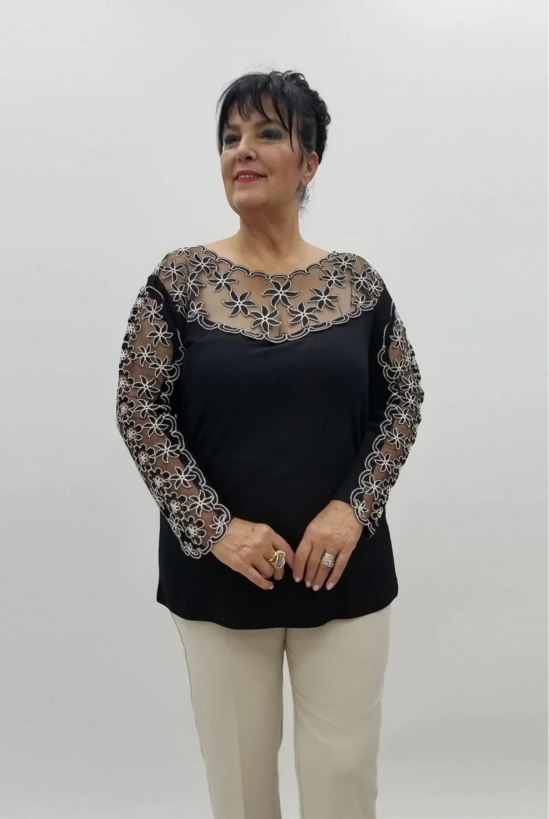 Nakışlarla işlenmiş, likralı viskon bluz (tam kalıptır, tam bedeninizi tercih edebilirsiniz.)