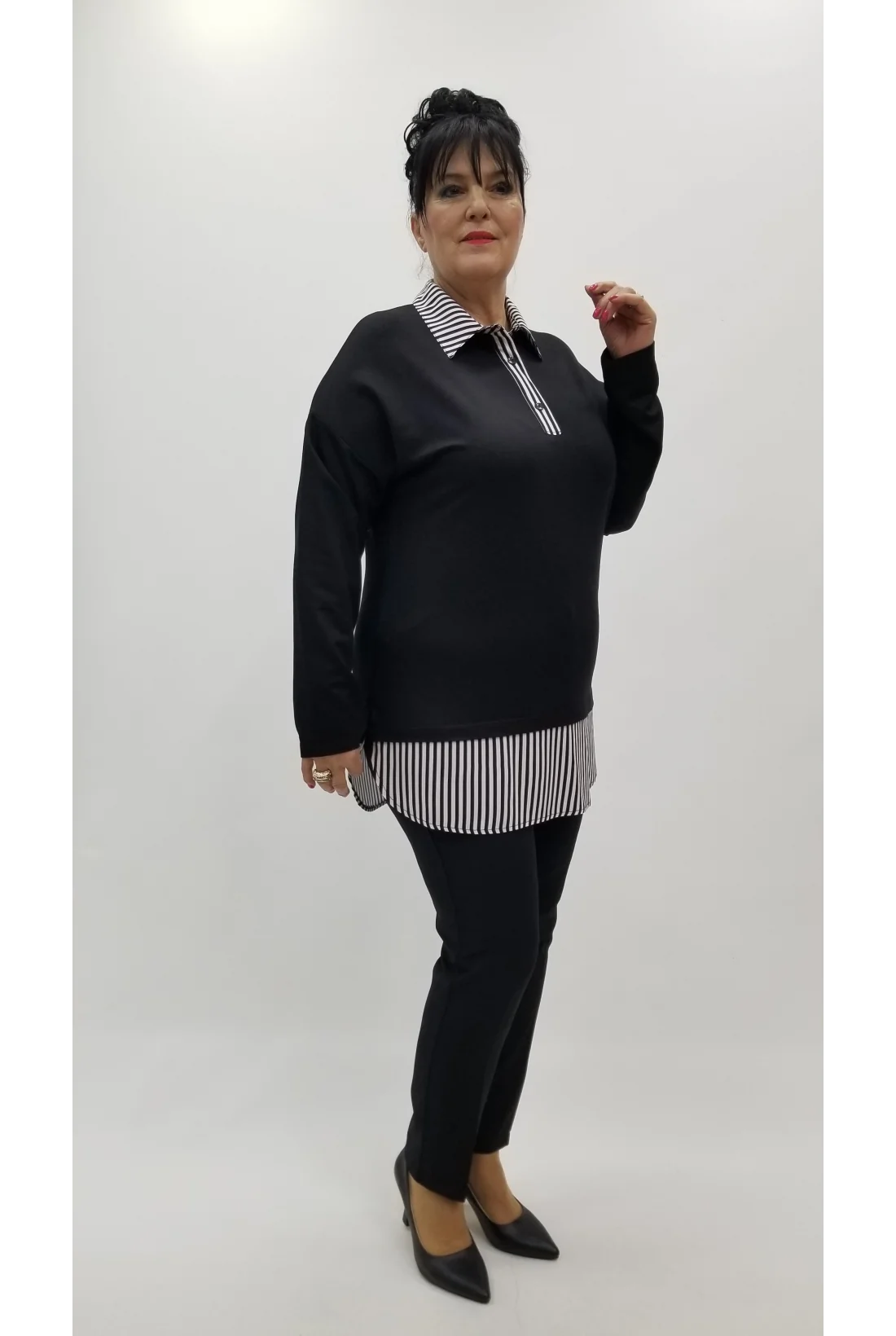 Miraggio Büyük Beden Bluz 4377 SİYAH/BEYAZ