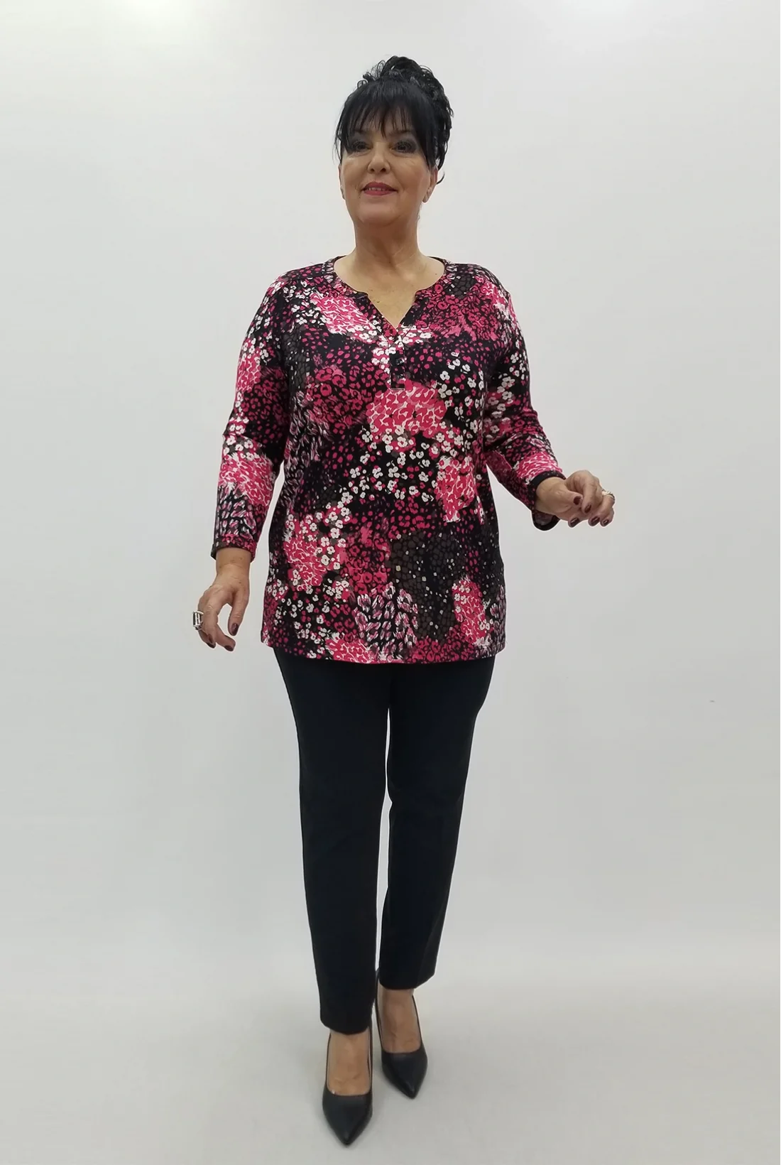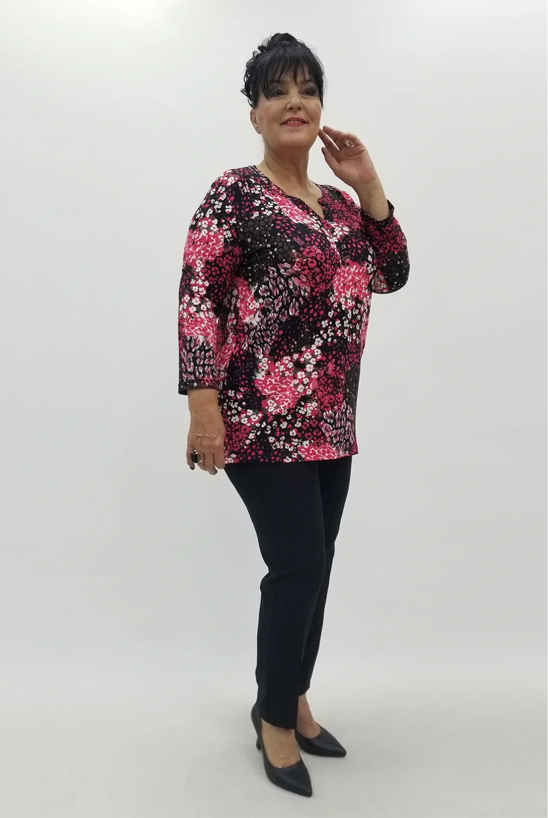 Miraggio Büyük Beden Bluz 99125 SİYAH/FUŞYA
