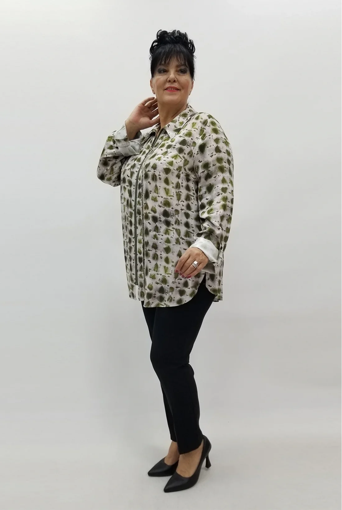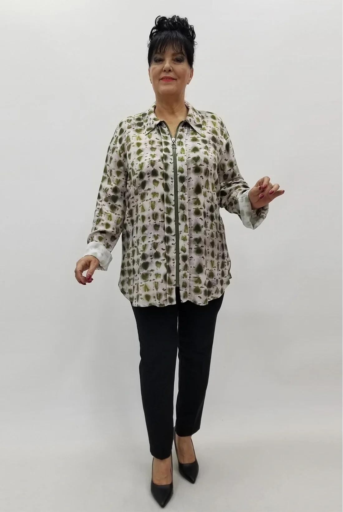 Gömlek yaka, fermuarlı, kol katlamalı pamuk viskon ceket (Tam kalıptır, tam bedeninizi tercih edebilirsiniz, likralı değildir.)