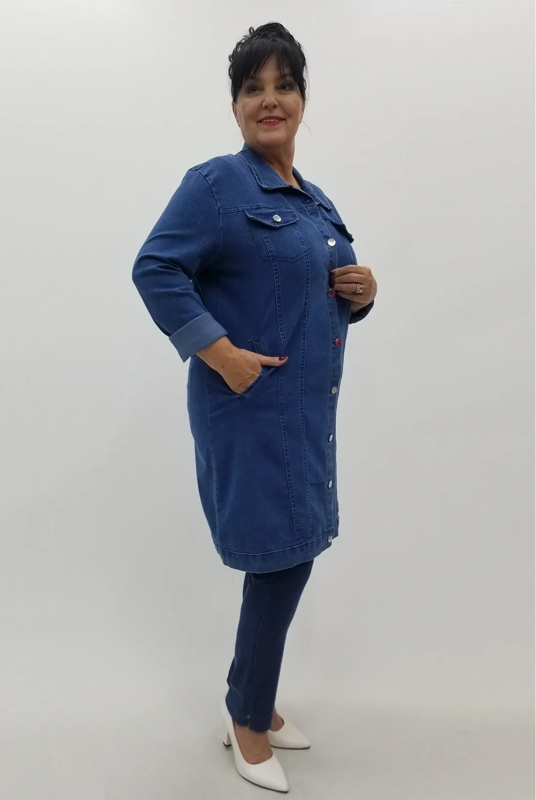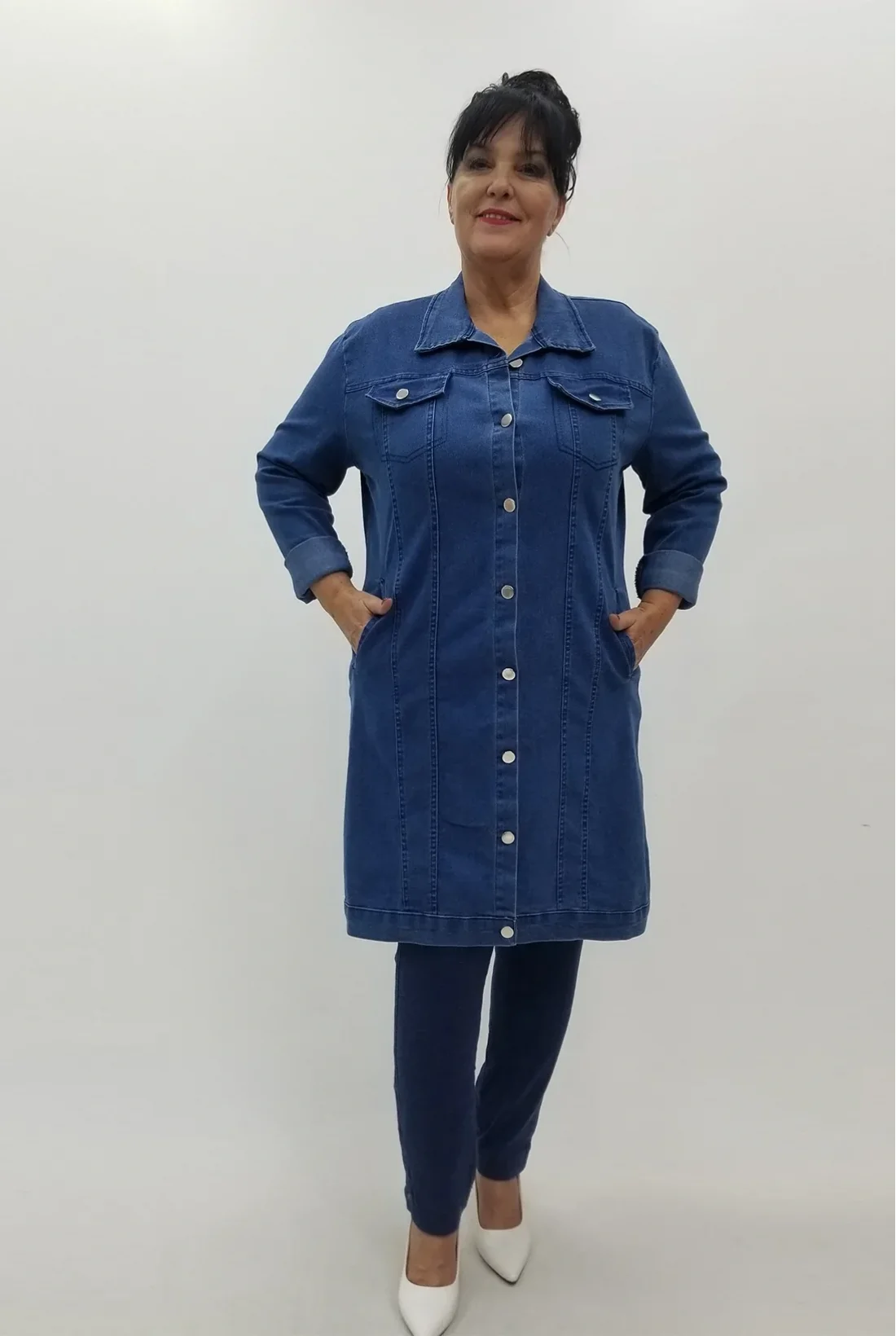 Düğmeli, cepli likralı kot tunik ceket&mont (Tam kalıptır.)