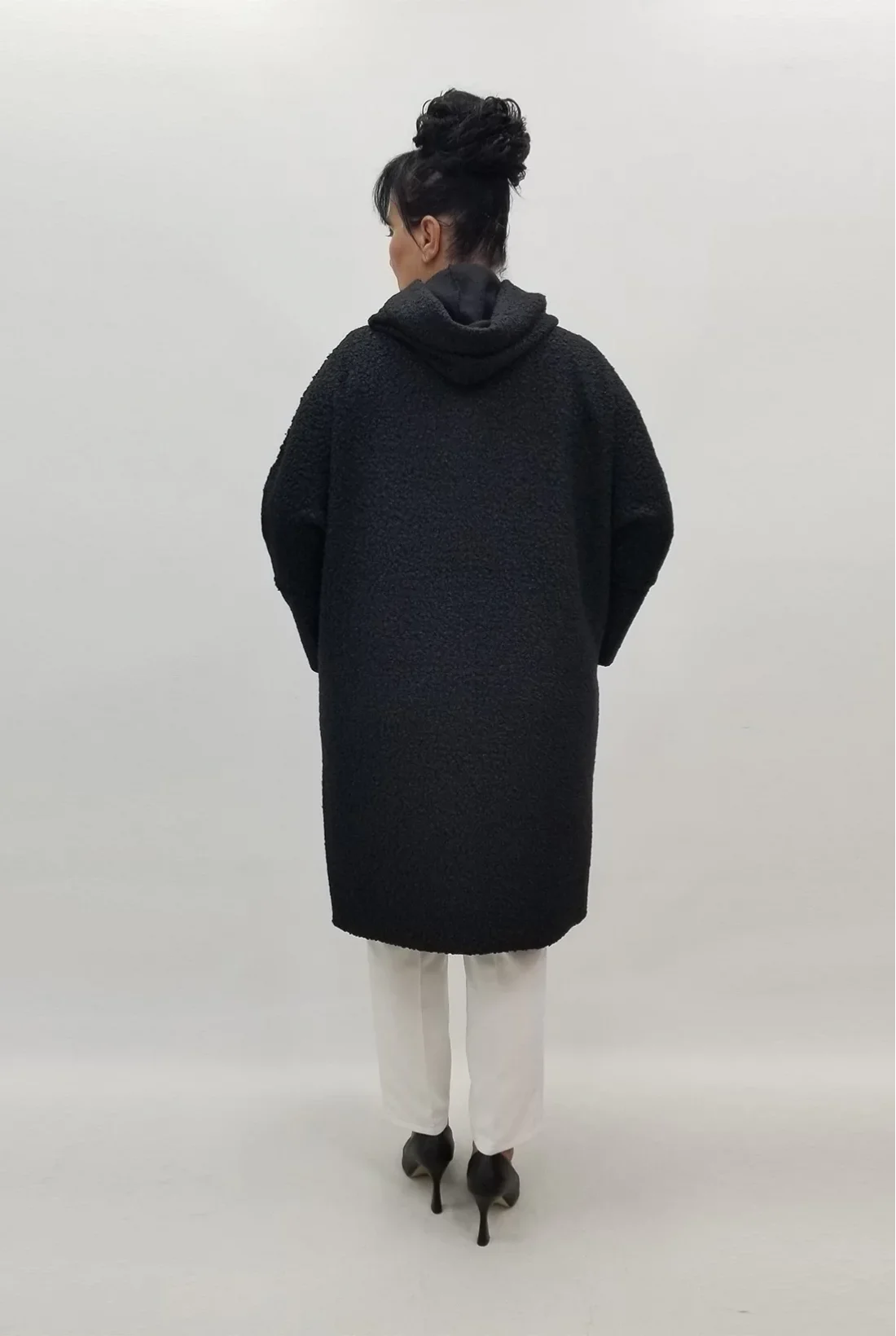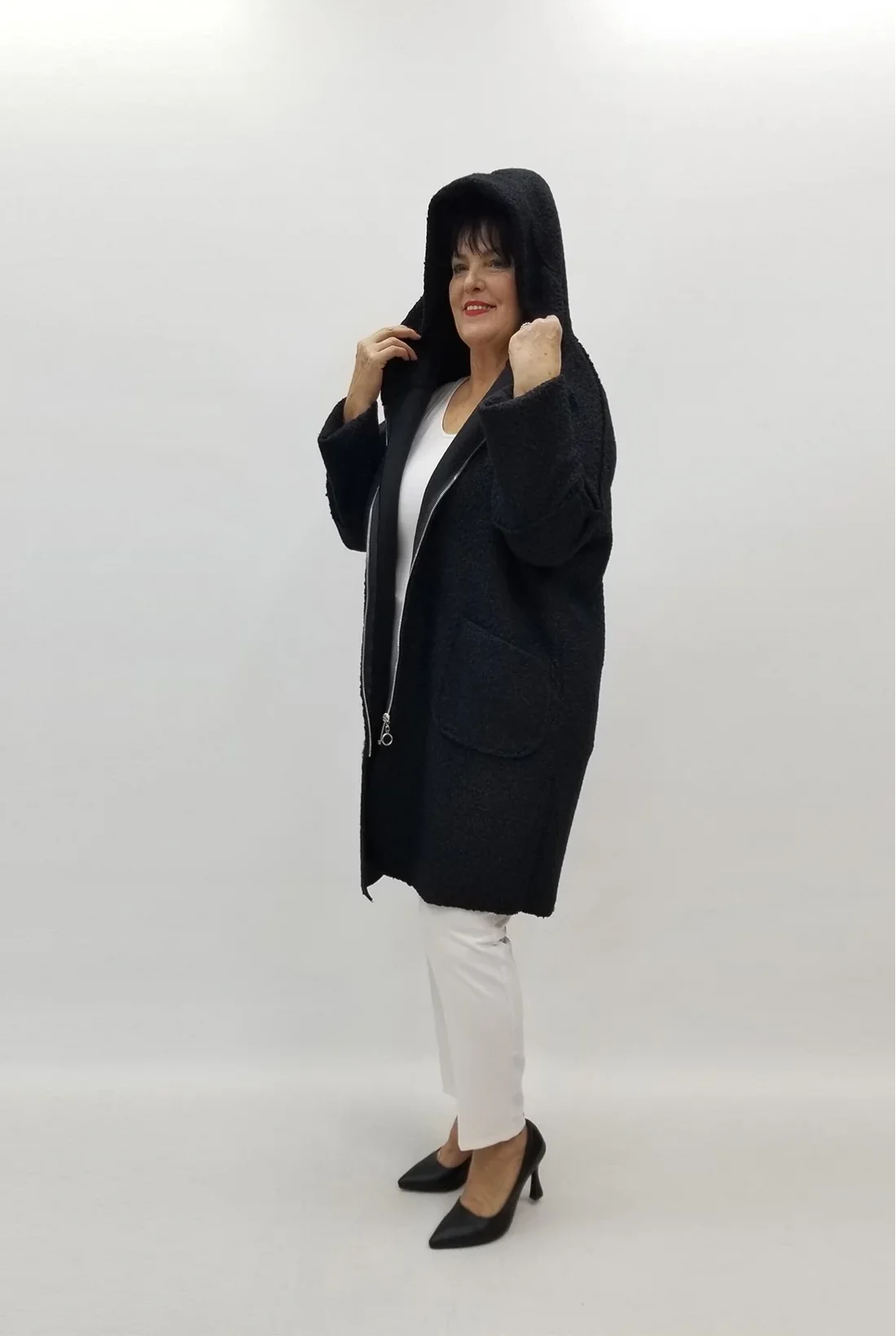 Kapşonlu, fermuarlı, cepli likralı buklet kumaş ceket (Tam kalıptır, tam bedeninizi tercih edebilirsiniz.)