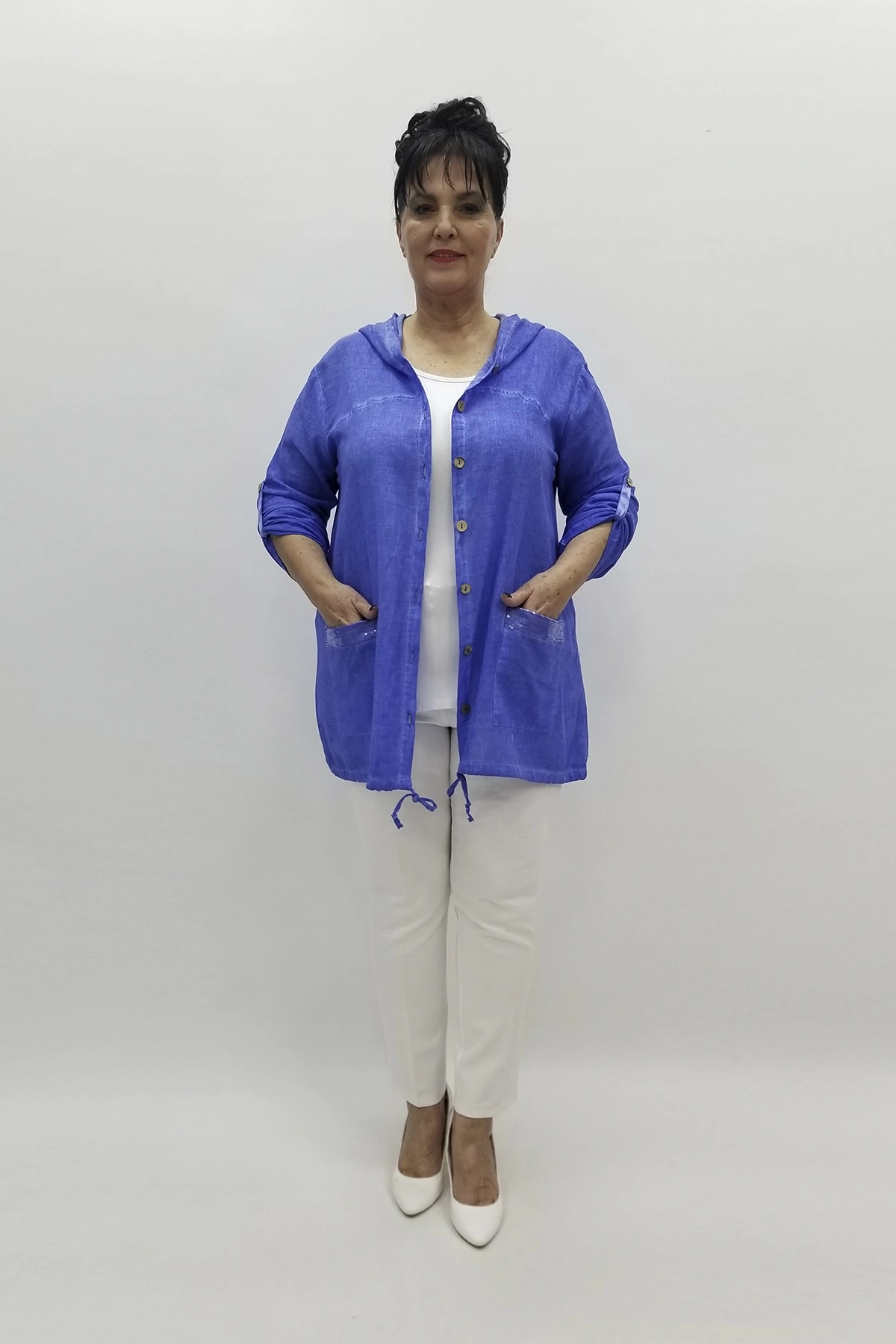 Cepli, düğmeli, kol katlamalı, yıkamalı pamuklu dokuma ceket  (Tam kalıptır, tam bedeninizi tercih edebilirsiniz, likralı değildir.)