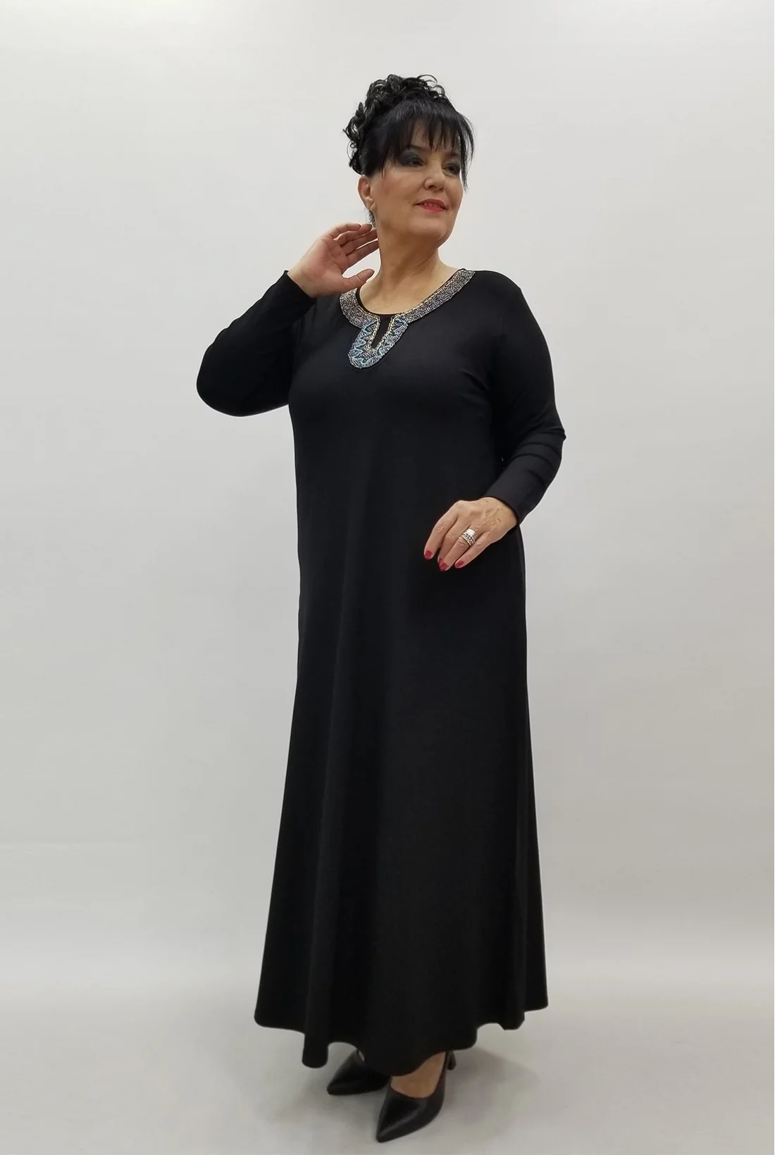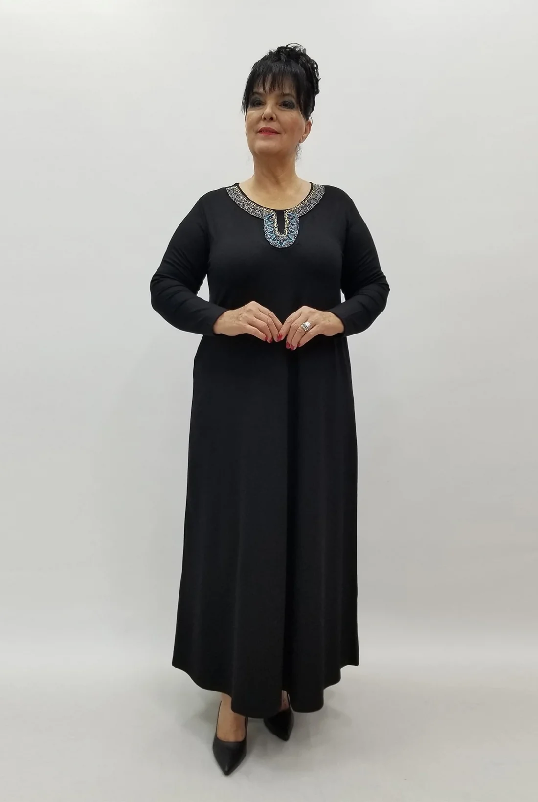 Miraggio Büyük Beden Elbise 4119 SİYAH/MAVİ