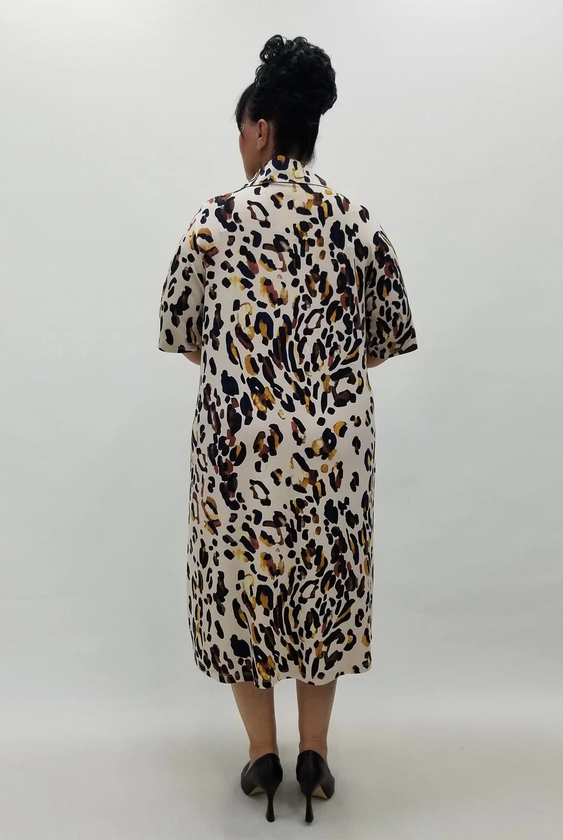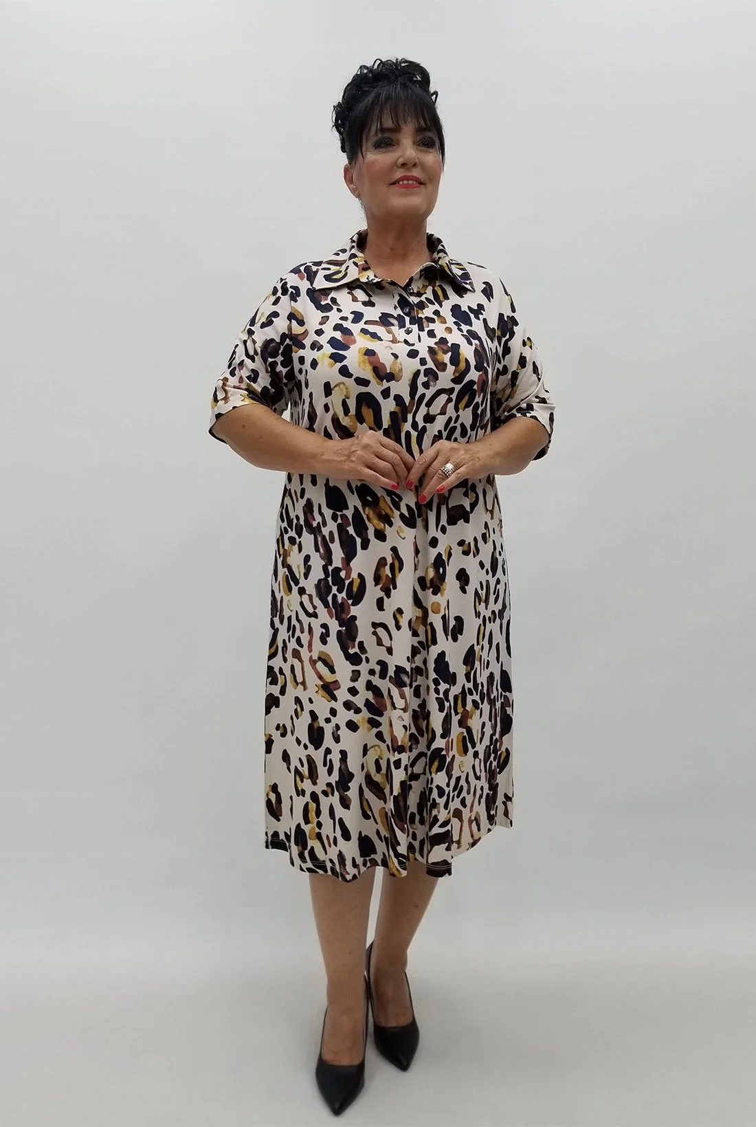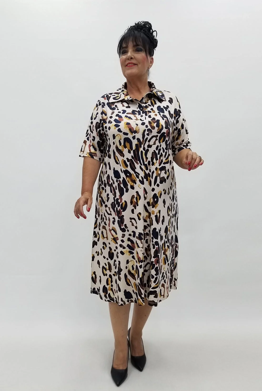 Gömlek yaka, yakası düğme detaylı likralı viskon kumaş elbise (tam kalıptır)