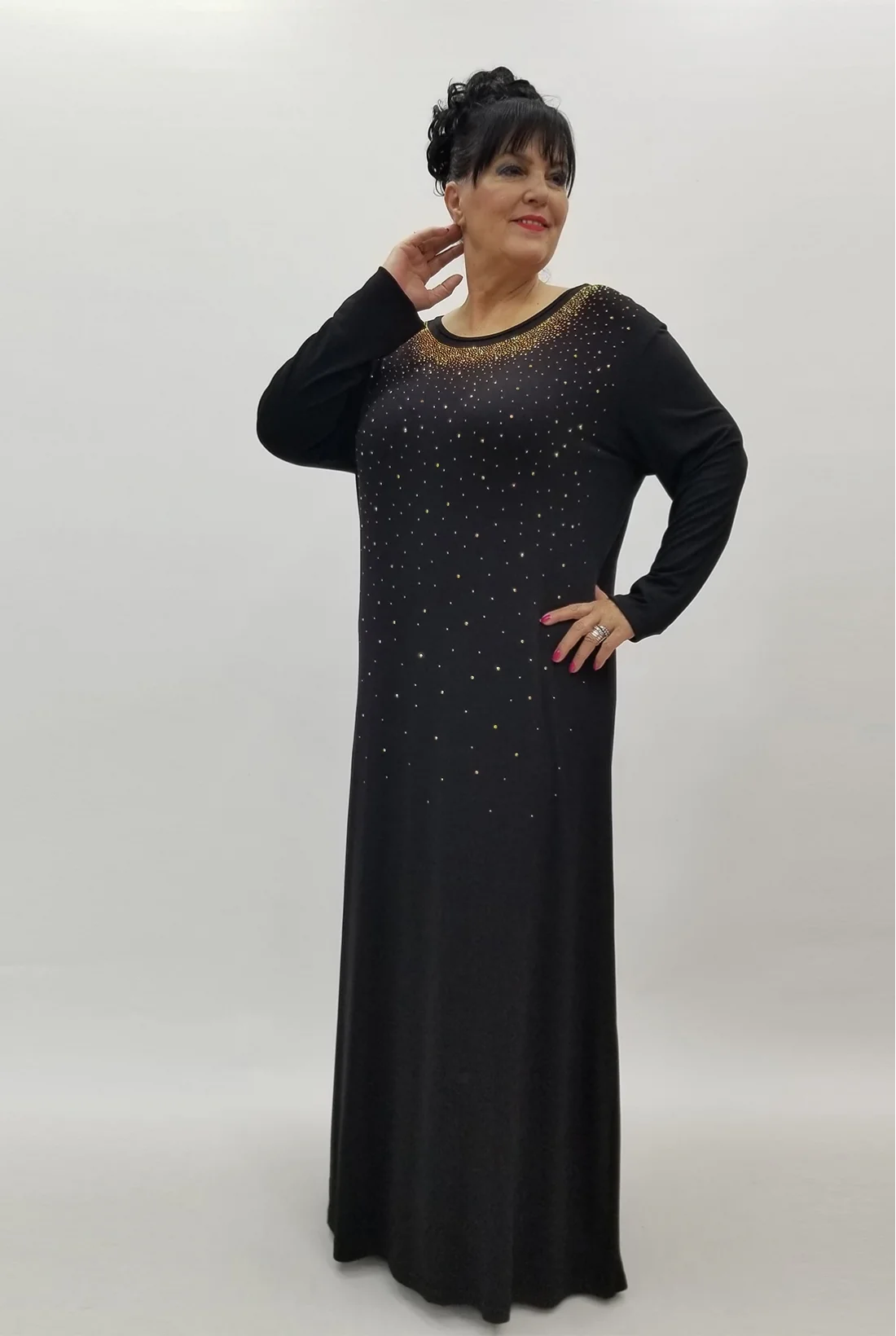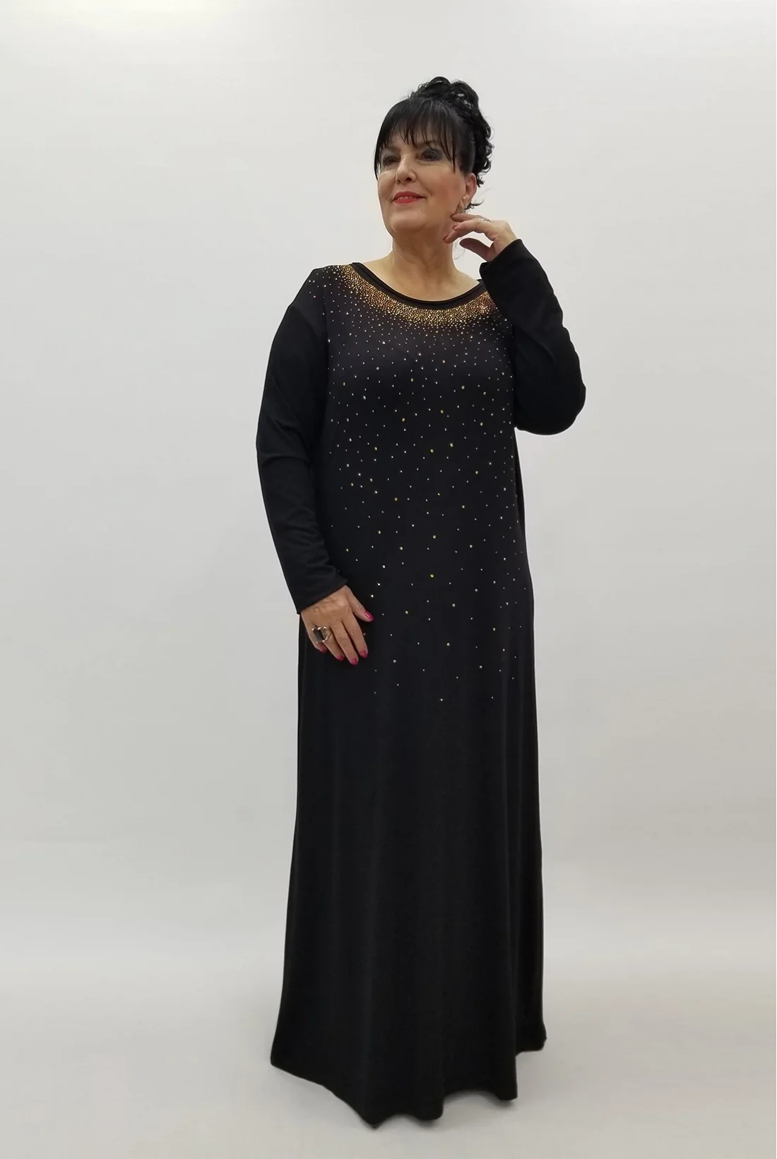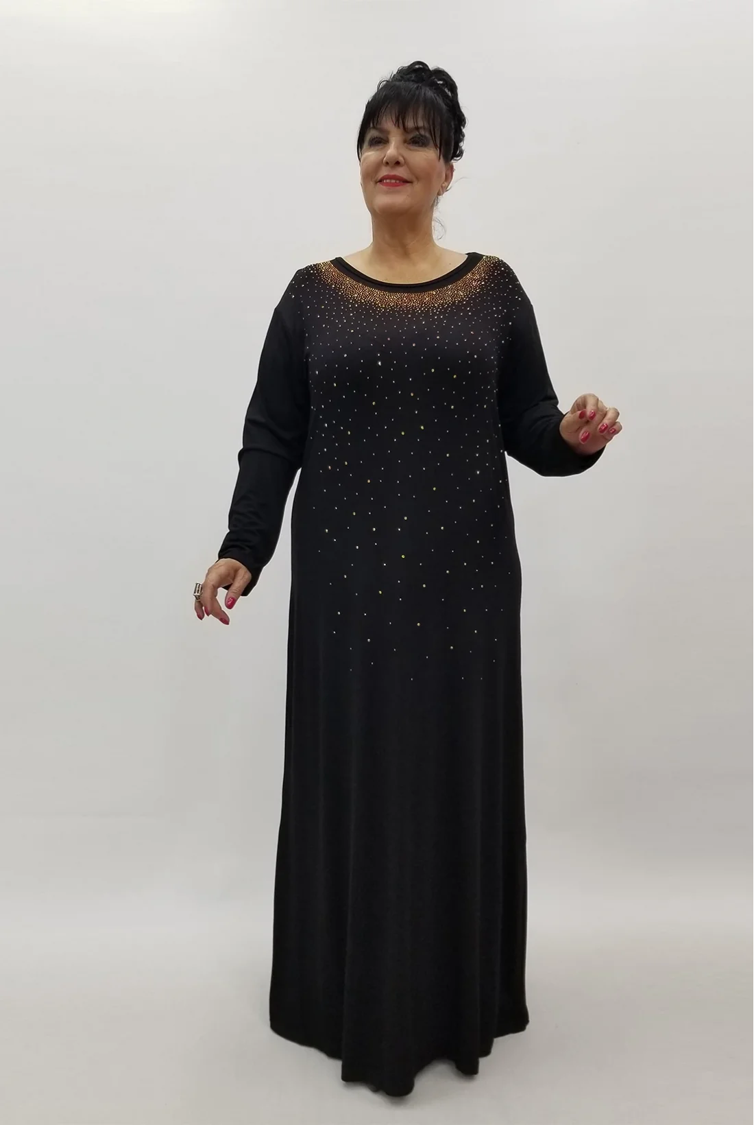 Ön kısmı taşlarla işlenmiş likralı viskon kumaş elbise (Tam kalıptır, tam bedeninizi tercih edebilirsiniz.)