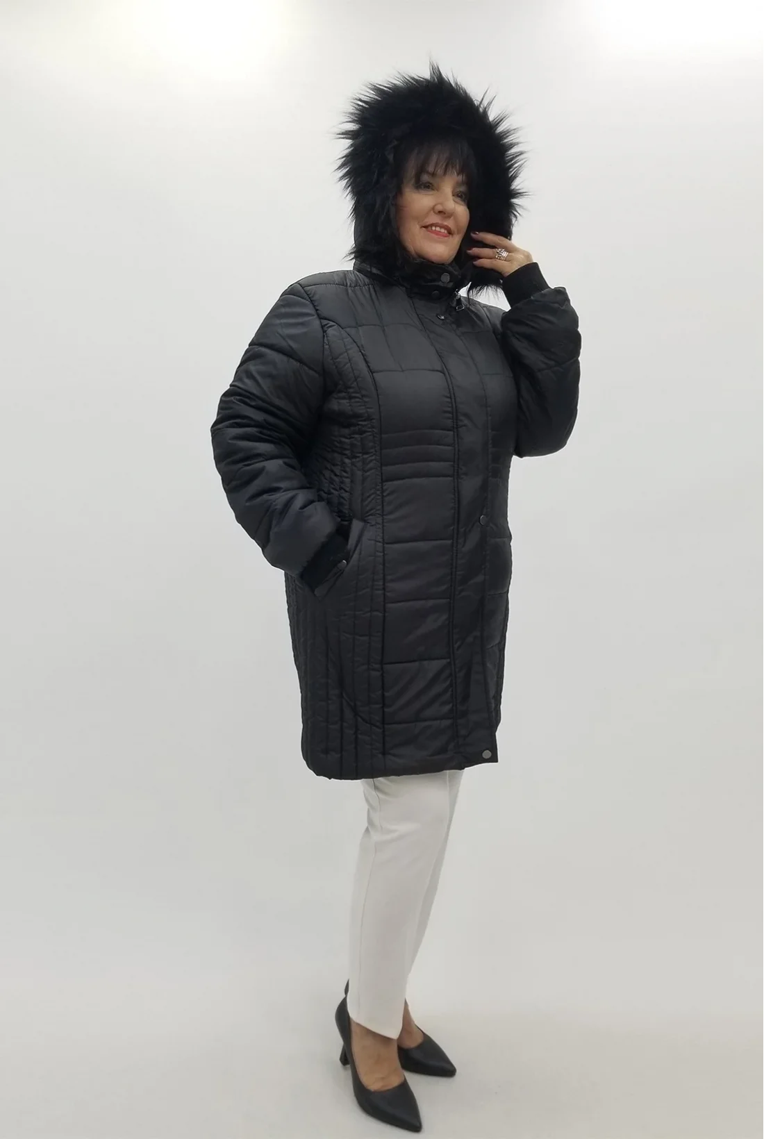 Kapşonlu, fermuarlı, cepli, çıt çıtlı astarlı kapitone kaban ( Tam kalıptır, tam bedeninizi tercih edebilirsiniz )