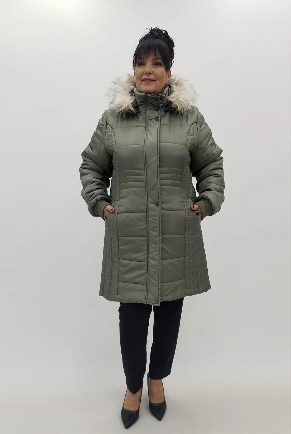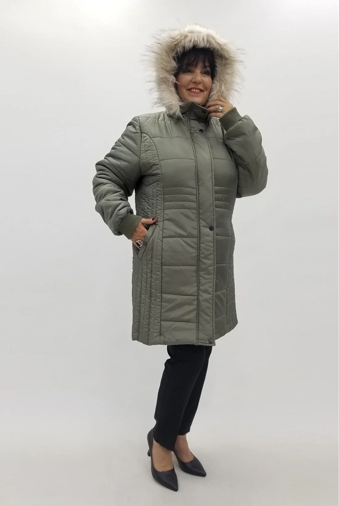 Kapşonlu, fermuarlı, cepli, çıt çıtlı astarlı kapitone kaban ( Tam kalıptır, tam bedeninizi tercih edebilirsiniz )
