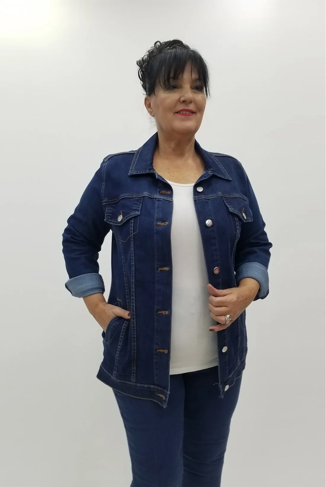 Düğmeli, cepli likralı kot ceket&mont (Tam kalıptır.)