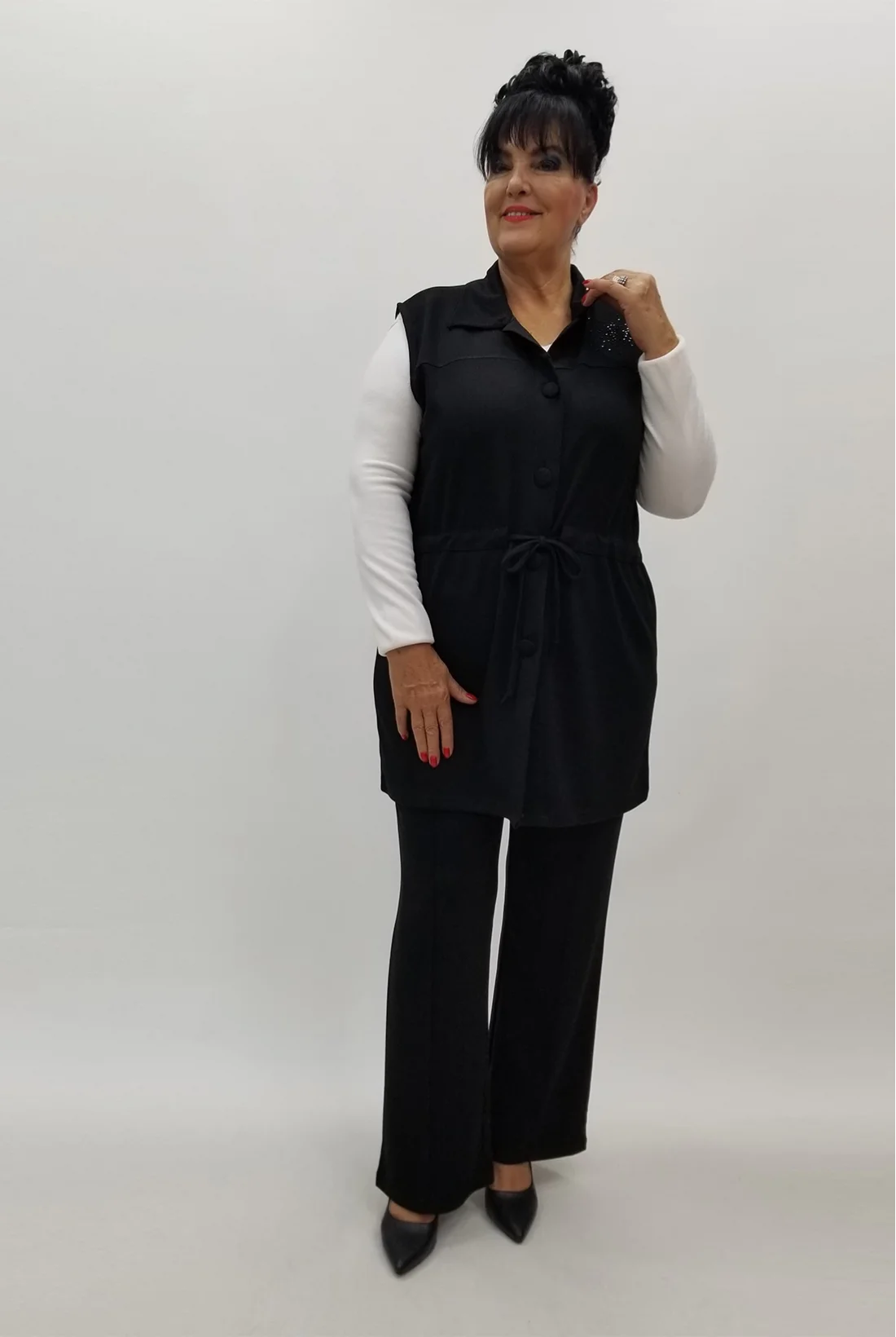 Beli isteğe göre ayarlanabilen likralı yeleği ve yüksek bel, beli komple lastikli, likralı pantolon altı ile yumuşacık dokulu Oysho kumaş ikili takım  (Tam kalıptır.)