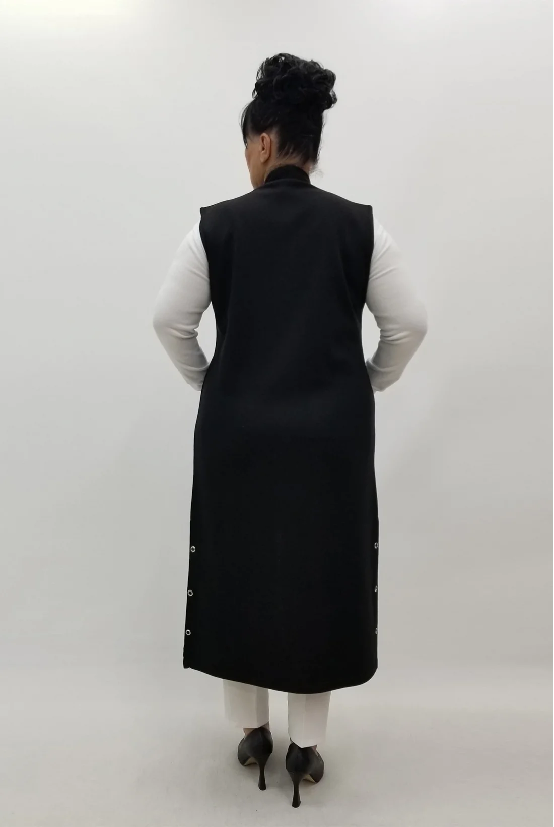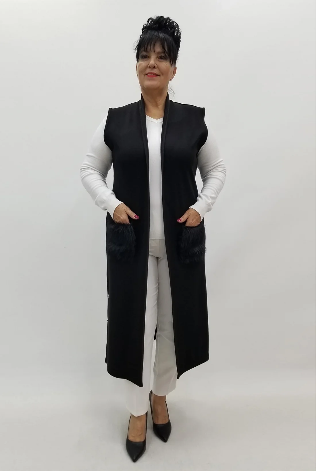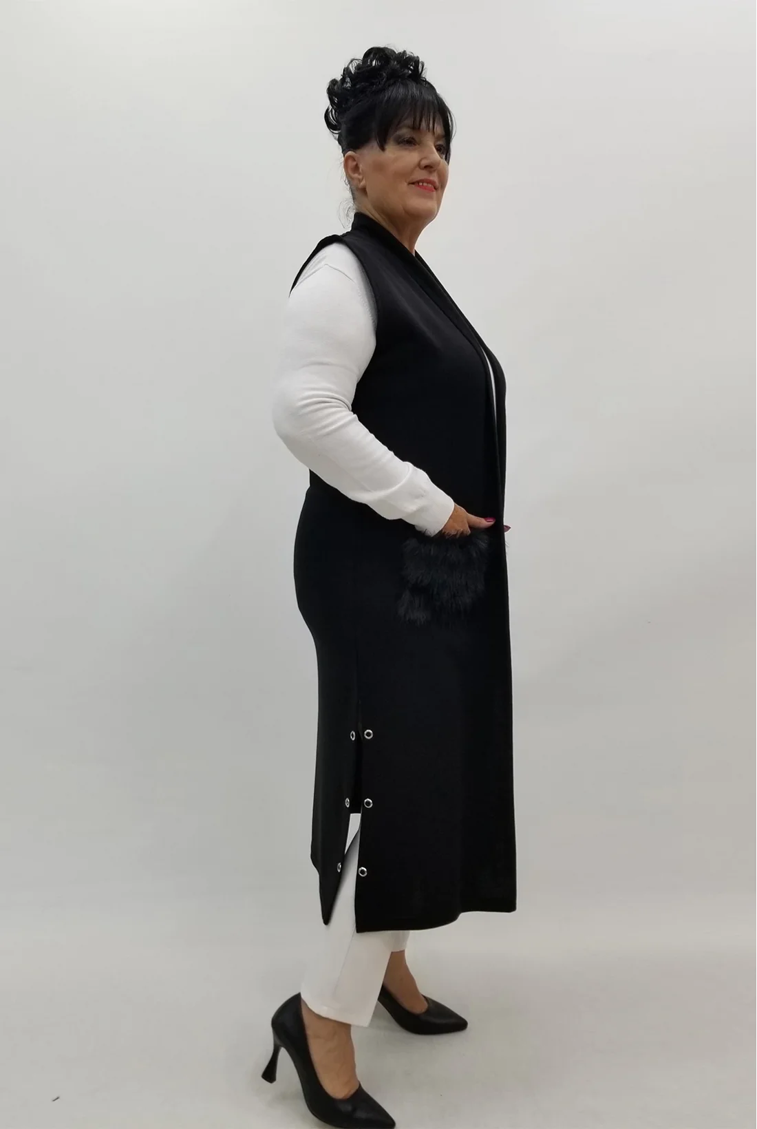 Cep detaylı likralı çelik örme triko yelek (Tam kalıptır.)