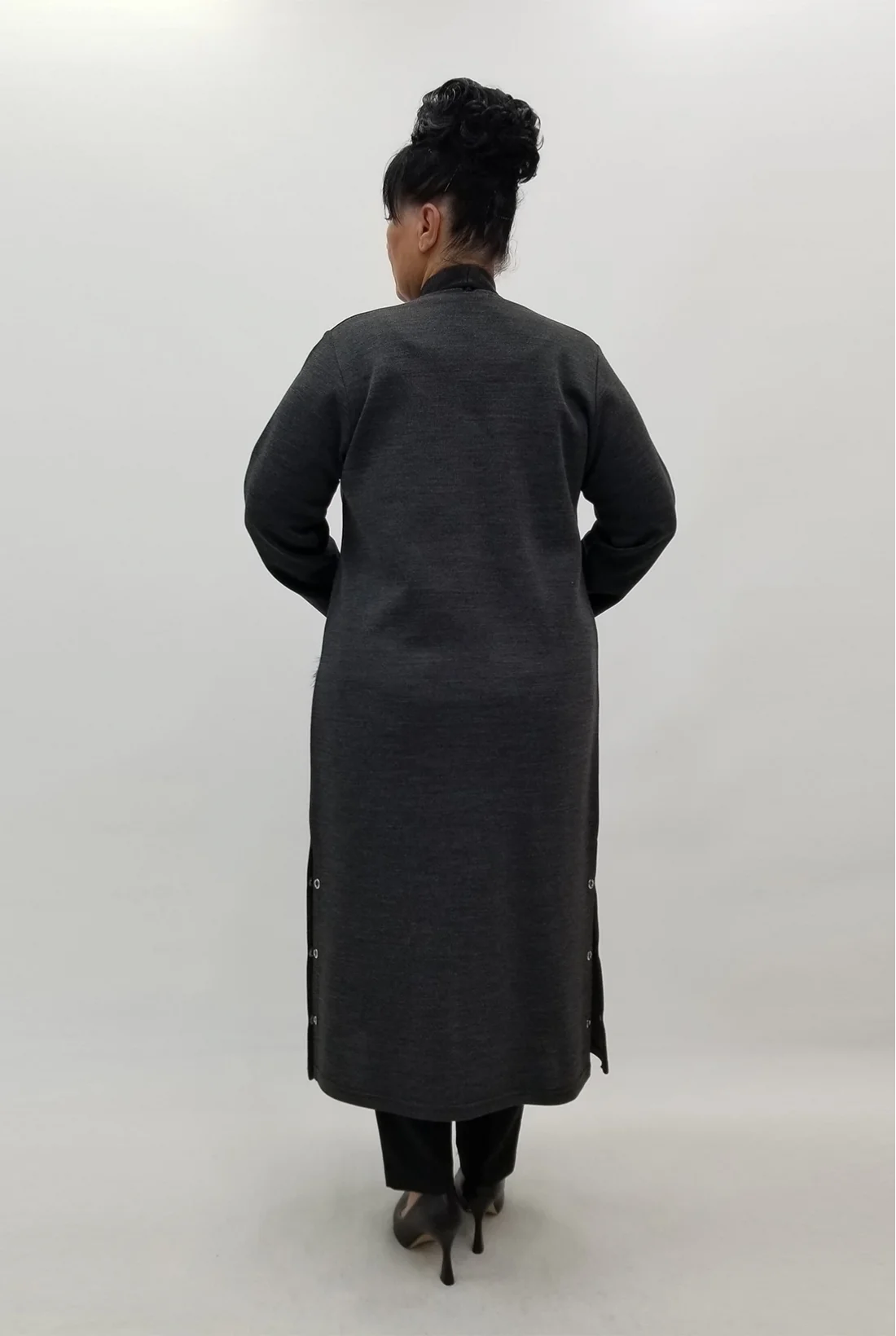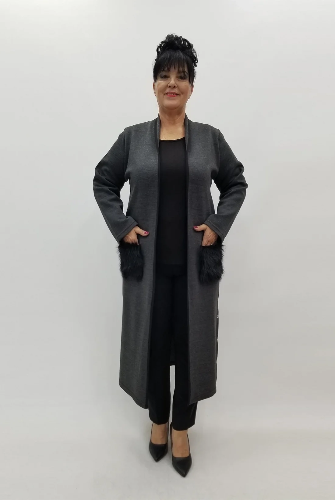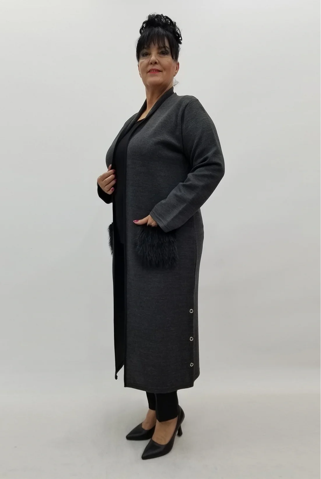 Cep detaylı likralı çelik örme triko ceket (Tam kalıptır.)
