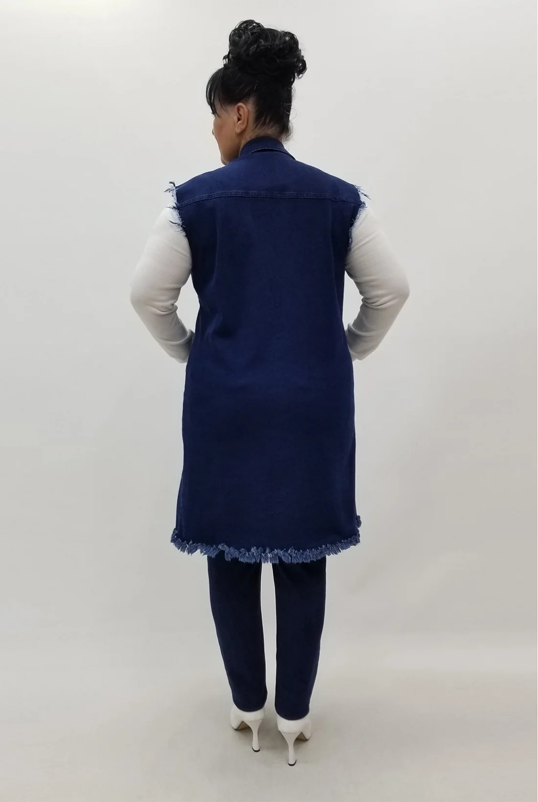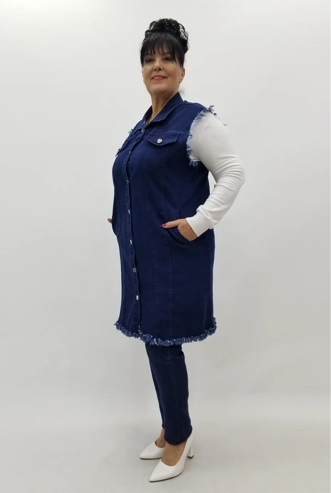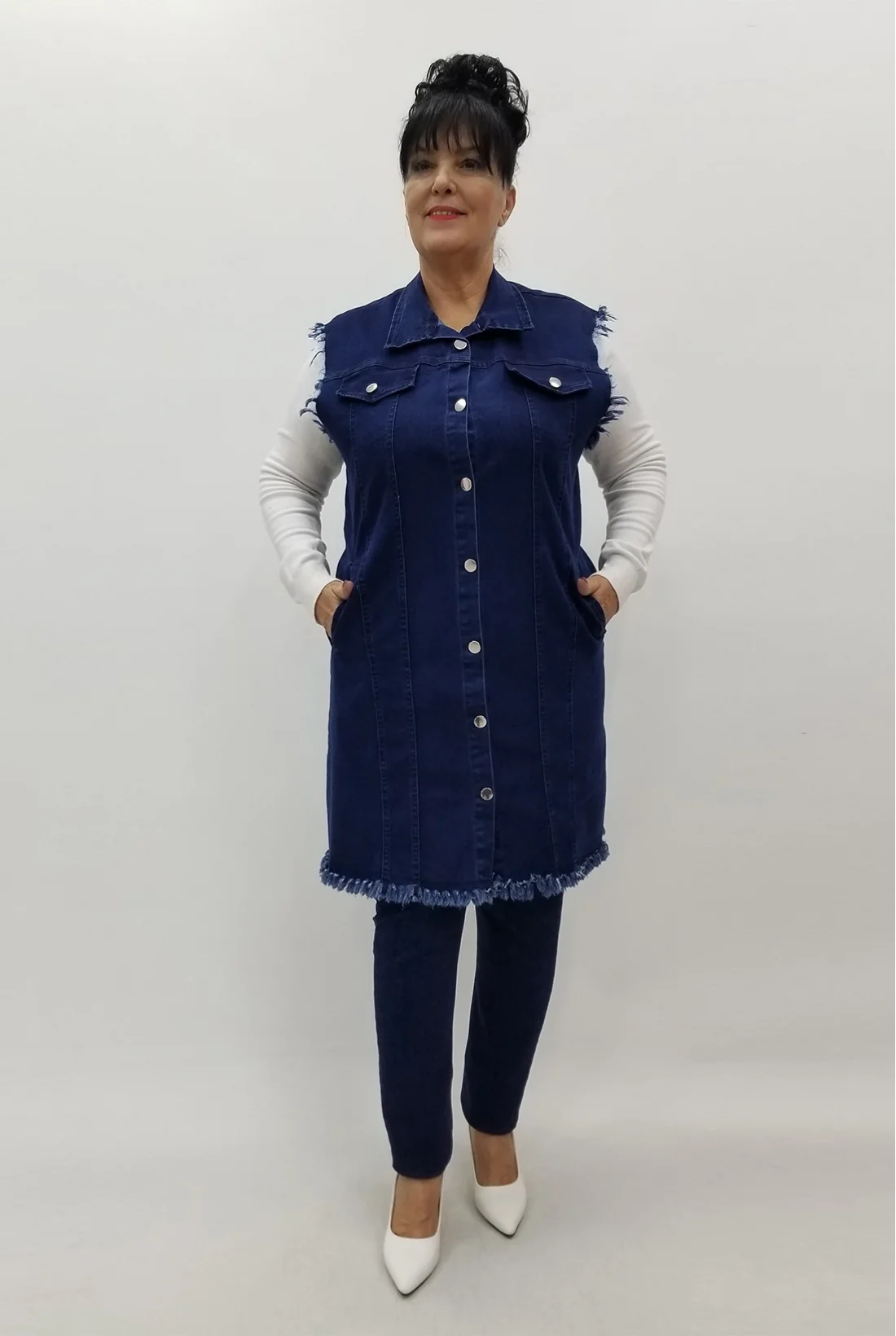 Cepli, likralı kot yelek ( Tam kalıptır.)