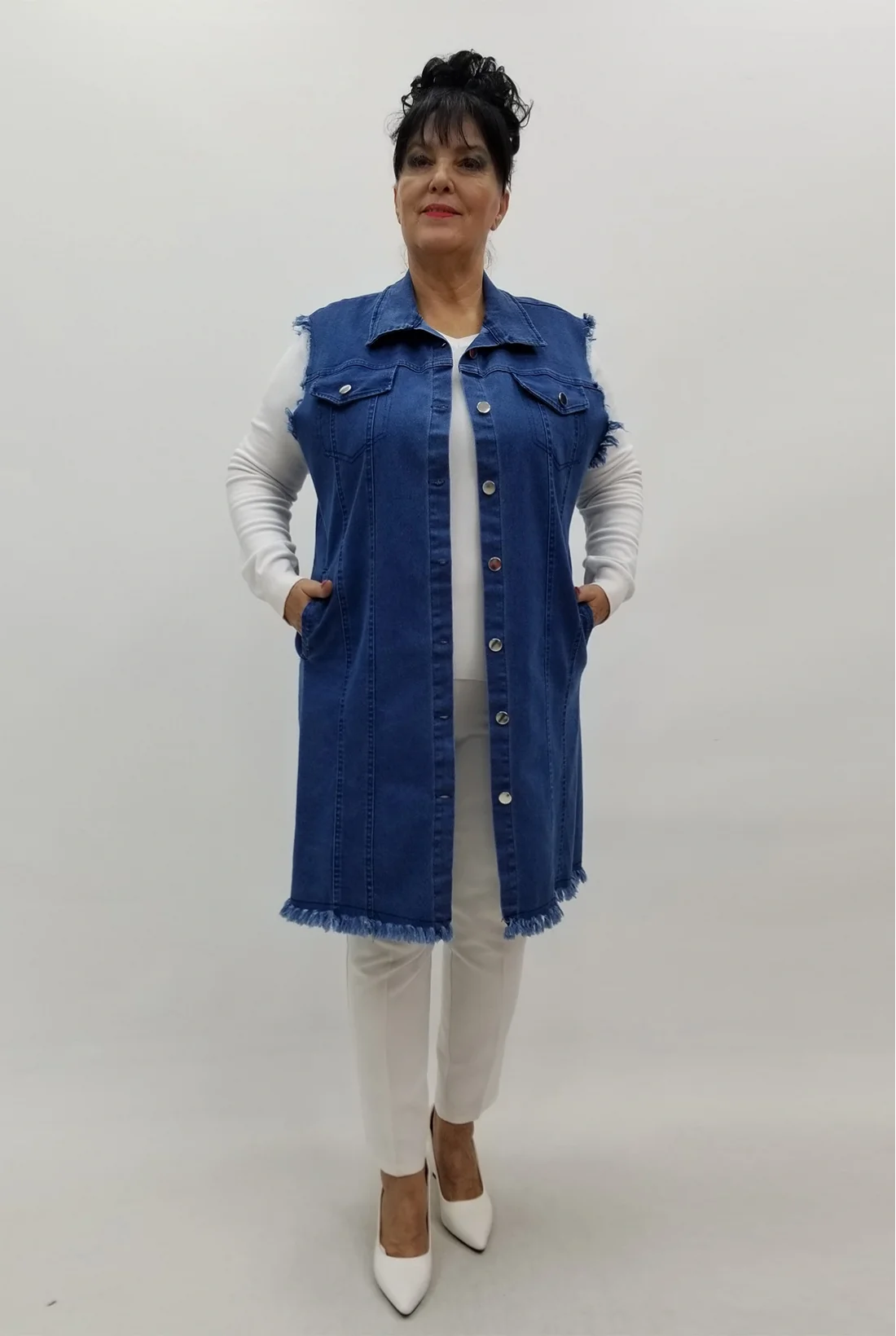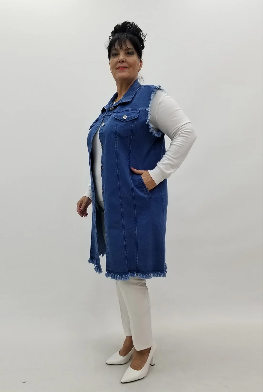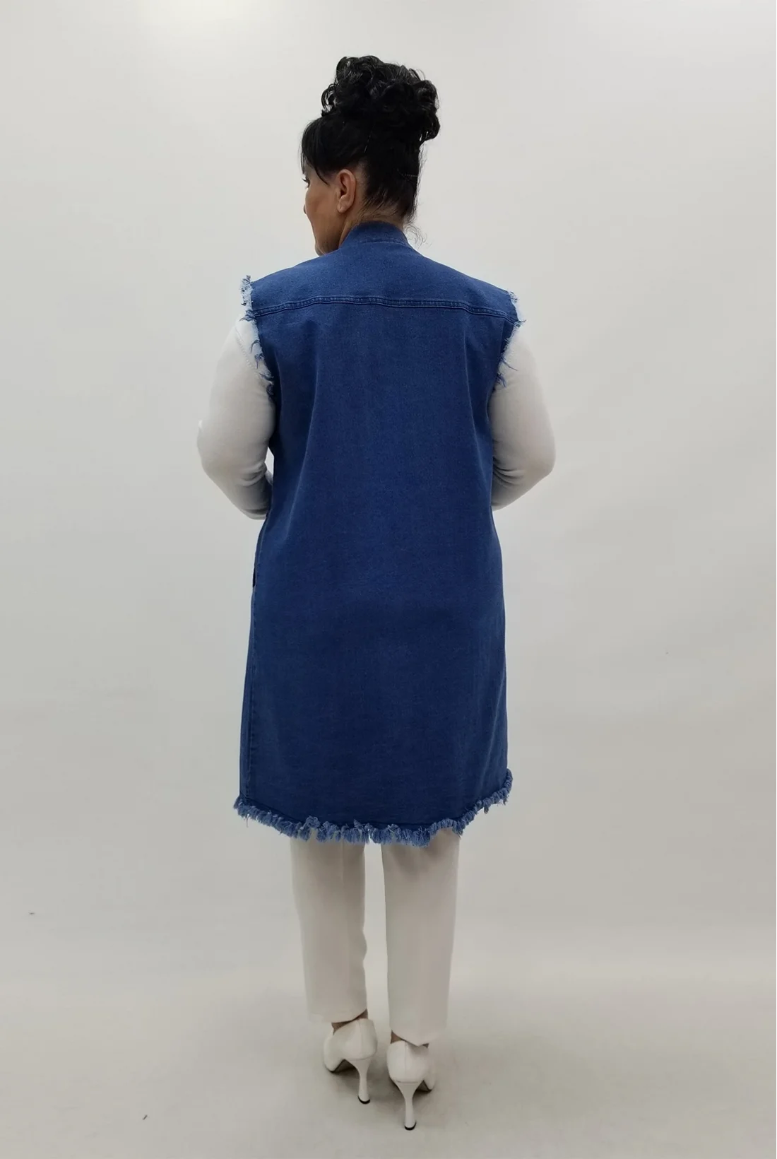 Cepli, likralı kot yelek ( Tam kalıptır.)